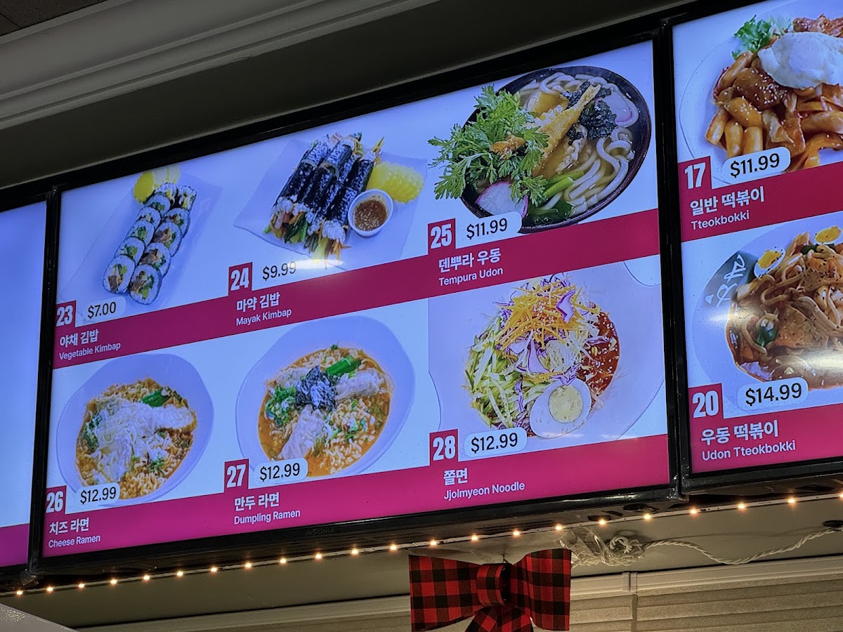 I’ve come here gradually more and more over time and I love it! Such authentic Korean cuisine that doesn’t disappoint in my opinion! My all time favorite would be the rose tteokboki! The flavor is perfect for anyone who has a low spice tolerance but careful with the temperature! I love all the vegetables and bacon and sausages they also add into the dish, and just how chewy the rice cakes are! But their other tteokboki options are also just as amazing! There’s so many options inside and just so many different dishes to try! The inside is always very clean I’ve never had an issue with any messy tables or messy anything there. Prices are pretty okay and wait times, depending on business, are reasonable! To-go containers and boxes do cost money though. I believe 0.25-0.50? (I could be wrong but I remember it’s less than a dollar for a single one, though it also depends on size). Can’t wait to try more! Also there is an Hmart right next door, there’s a big parking lot so I’ve never had any issues parking! Handicap friendly inside Weekends are quite busy! Also closing time may be at 9pm, but some of the individual food shops inside close earlier than 9pm. For ordering tteokboki, from my experience, I think you get more quantity wise when you order to eat there than ordering to-go.