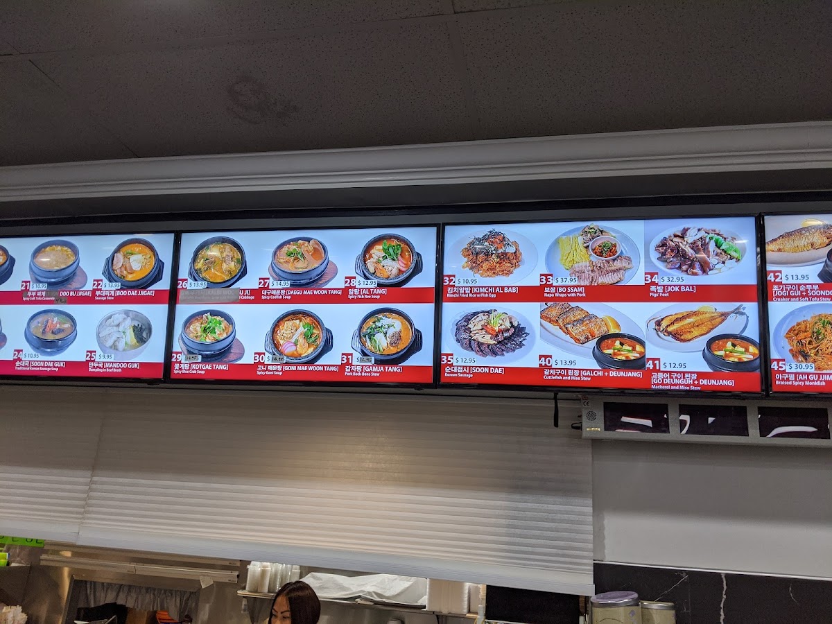 Very good food. We tasted the delicious Tang Jjan Myeon (#85), It's a spicy soup with sea food and half a portion of breaded pork South Korean food. You may find Japanese and Chinese food as well. I really recommend this place.
